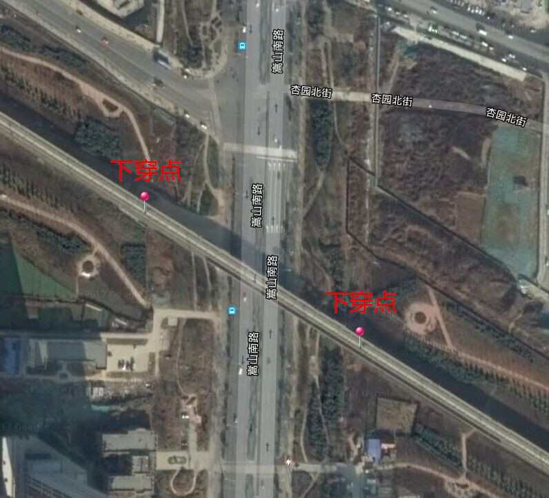 本项目位于郑州市东北部,为郑州市107辅道快速化工程下穿郑徐高铁及其疏解线工程变形观测项目;下穿点位于郑徐高铁跨连霍高速公路特大桥第51-56号墩、南东疏解线特大桥50-55号墩、东南疏解线特大桥50-55号墩之间,下穿点处郑徐高铁铁路里程为DK6+994.188,道路里程为K5+152.055,铁路与道路夹角为37.1度;下穿点处南东疏解线铁路里程为SEDK2+263.611,道路里程为K5+030.791,铁路与道路夹角为40.77度;下穿点处东南疏解线铁路里程为ESDK2+274.247,道路里程为K5+109.924,铁路与道路夹角为48.55度。