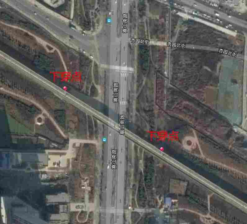 嵩山南路位于郑州市中心城区南部,为规划南北向城市主干路,道路东西两侧辅道规划管线种类繁多。该穿越点位于郑西贯通线郑州东与郑州西区间,东侧防护涵下穿郑西贯通线第453孔、里程K571+921m,与郑西贯通线夹角为80°。西侧防护涵下穿第461孔、里程K572+151m,与郑西贯通线夹角为90°。穿越处铁路为双线电气化铁路,线间距5m,无砟轨道,无缝线路,列车设计行车速度350km/h。